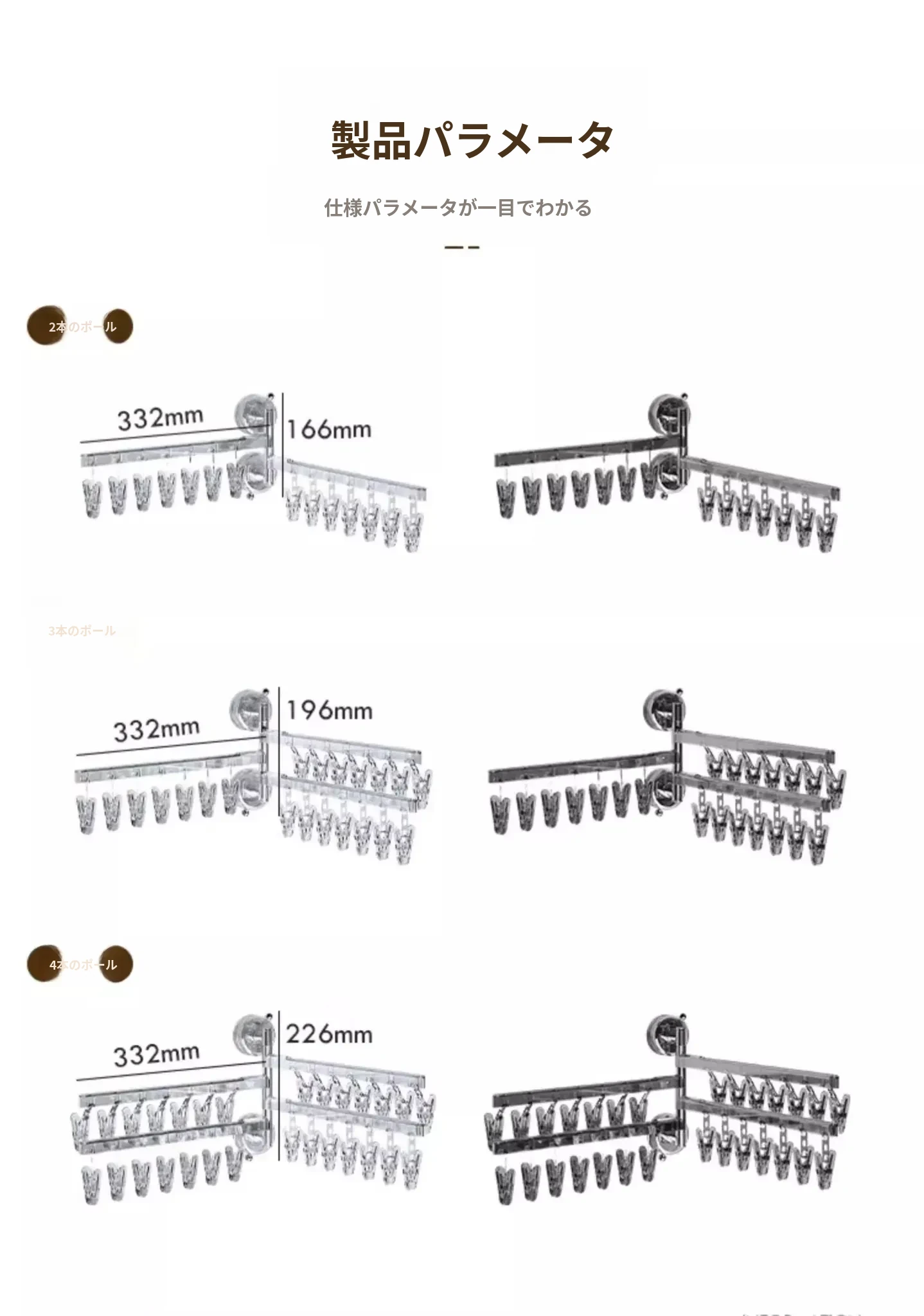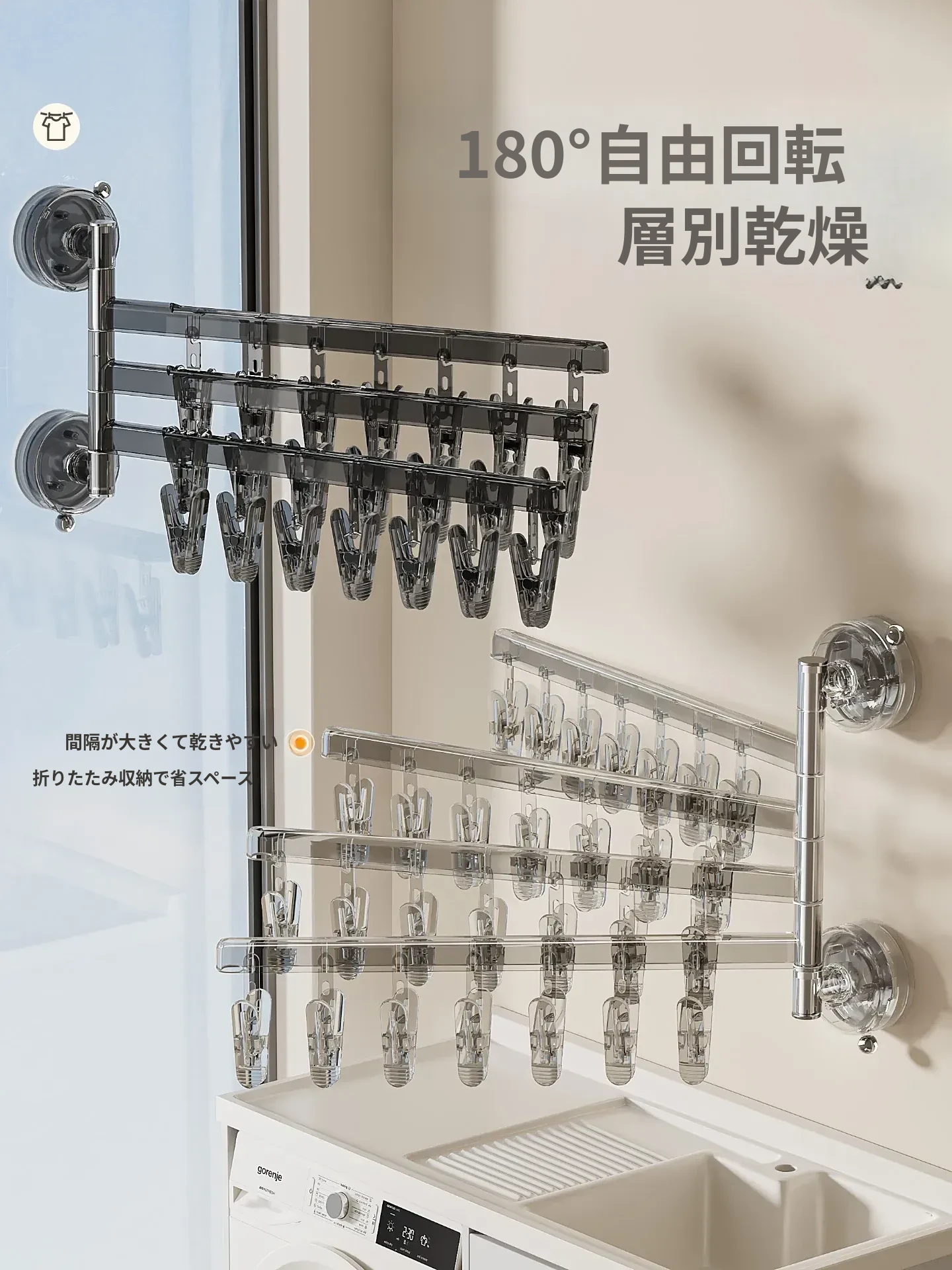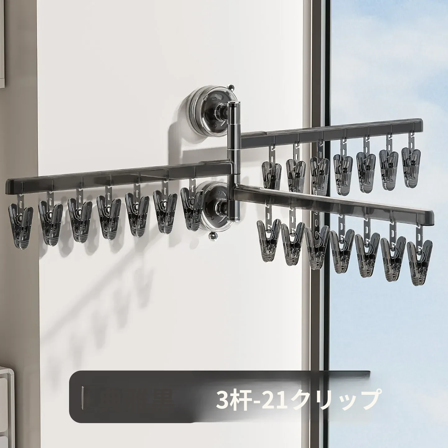【典雅黑】3本21クリップ✅️ 108°回転干し可能