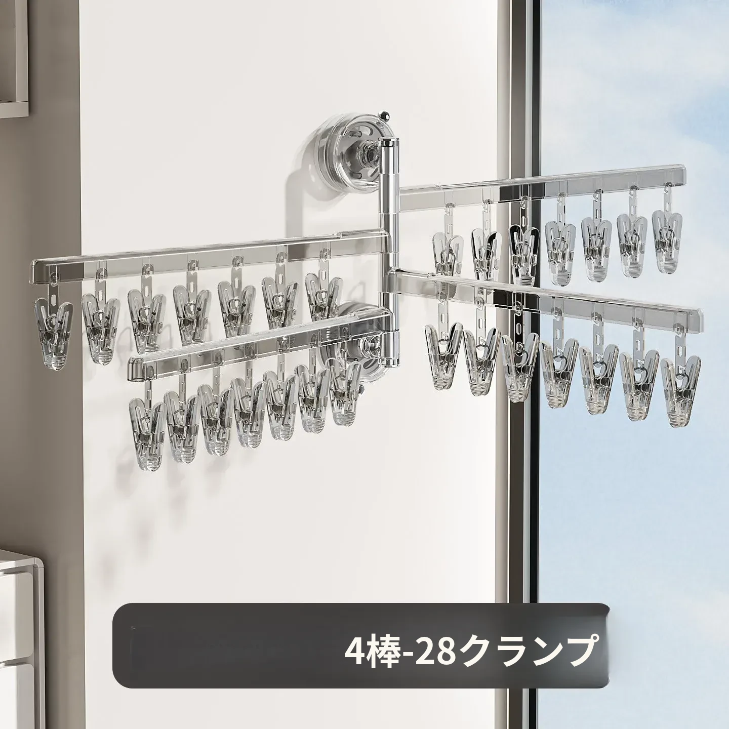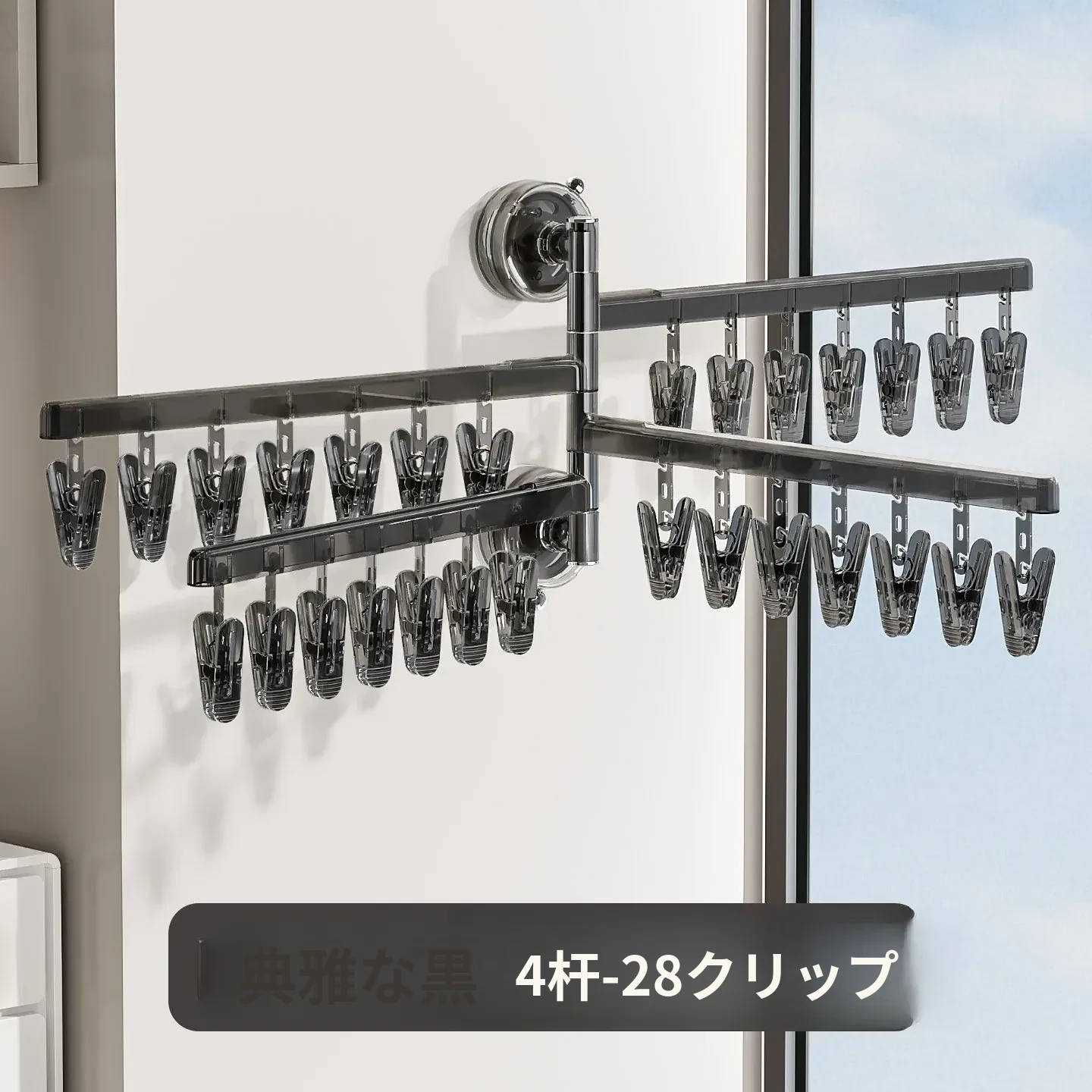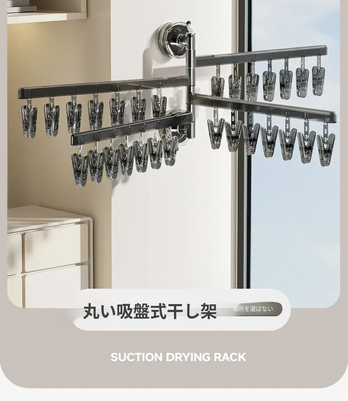 日本製吸盤ソックス乾燥ラック - バルコニー用、穴を開けずに取り付け可能!折りたたみ式の靴下クリップで、靴下やパンツを効率的に乾燥。家庭に最適な便利アイテム!