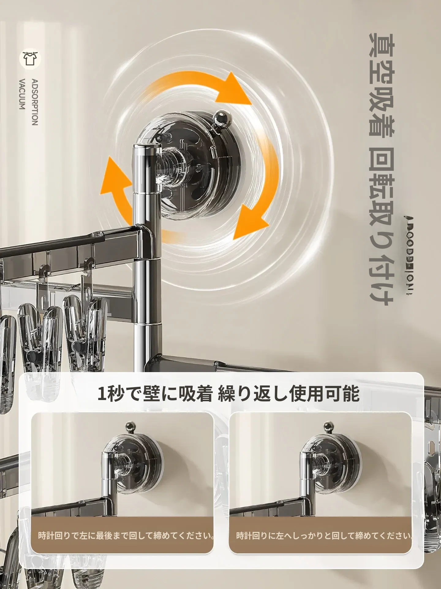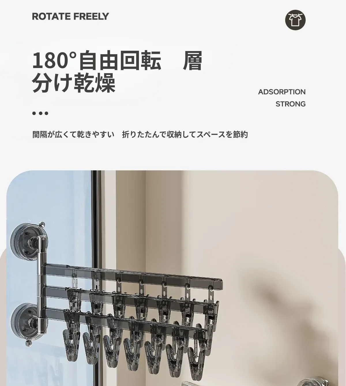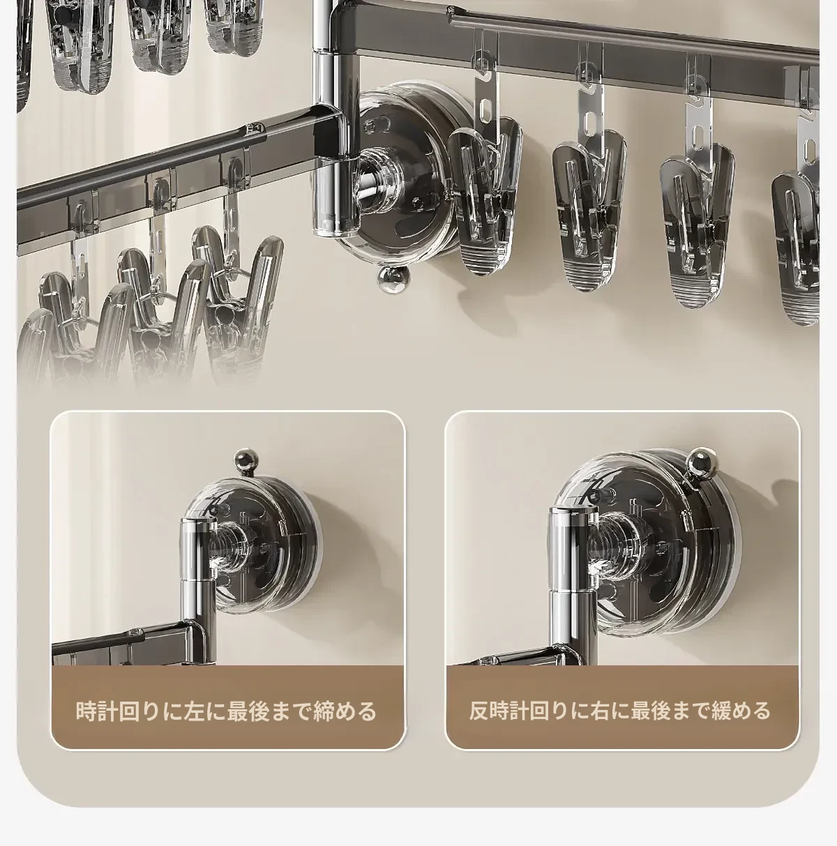 日本製吸盤ソックス乾燥ラック - バルコニー用、穴を開けずに取り付け可能!折りたたみ式の靴下クリップで、靴下やパンツを効率的に乾燥。家庭に最適な便利アイテム!