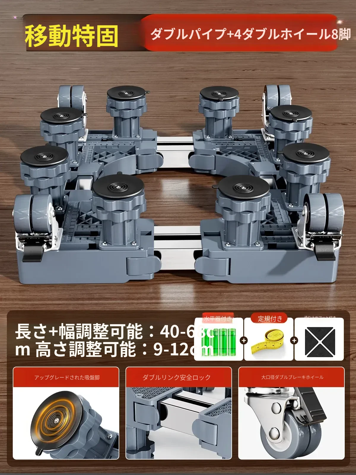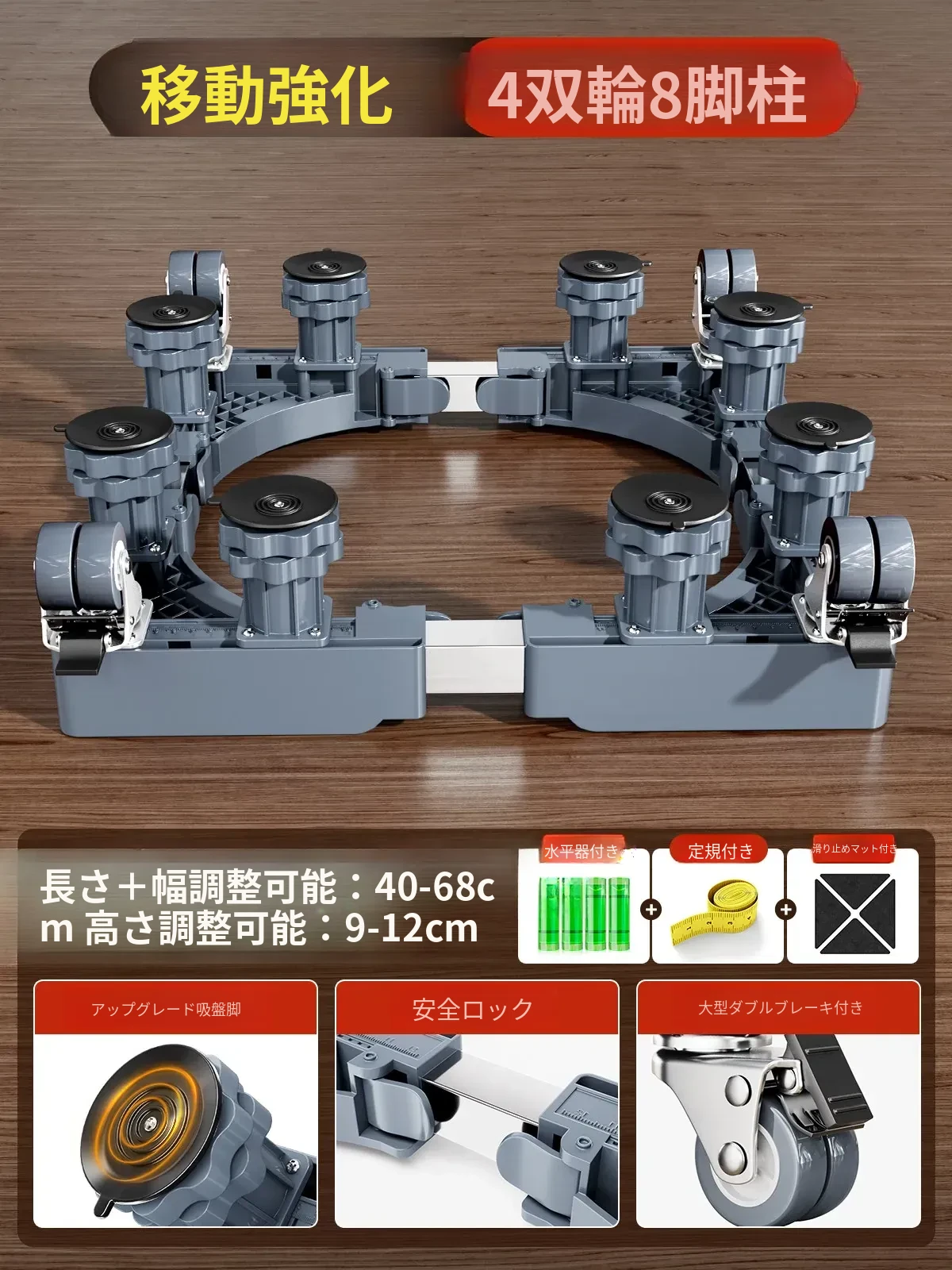 【移動安定款】4双輪ダブルブレーキ+8脚柱+ダブル防震ロック