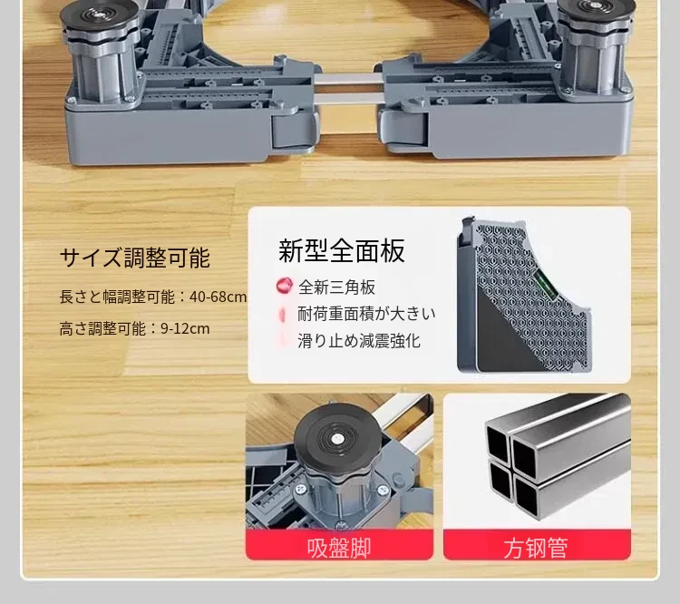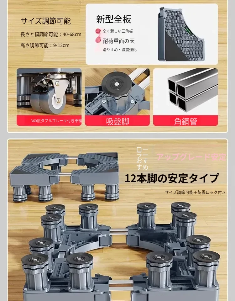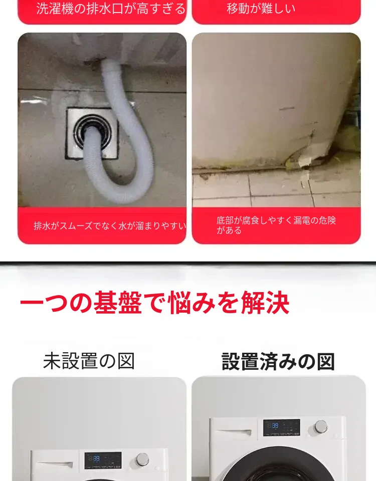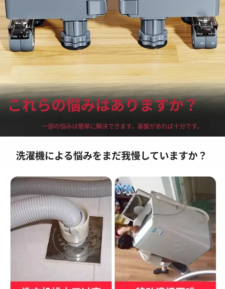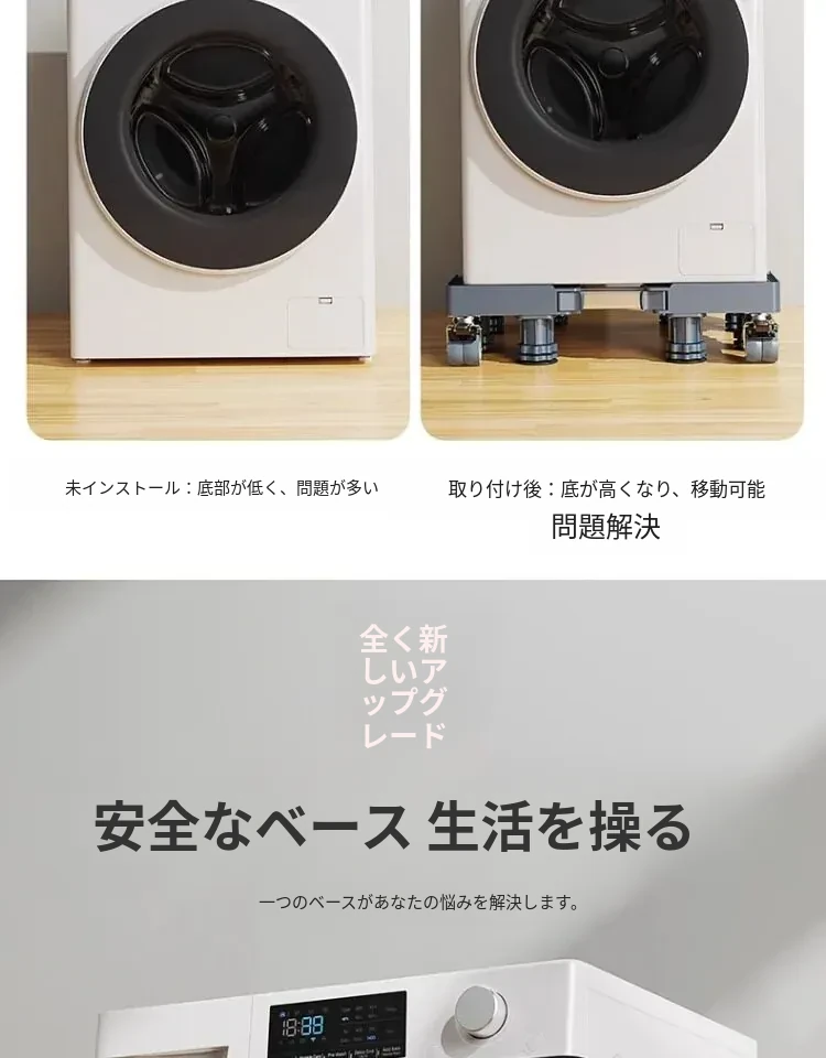 パナソニック洗濯機用キャスター付き底上げスタンド - 防水・防震設計の高強度スチール製フレームで、移動も簡単!あなたの洗濯機をしっかりサポートし、生活を快適にします。