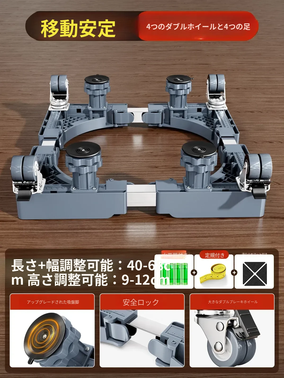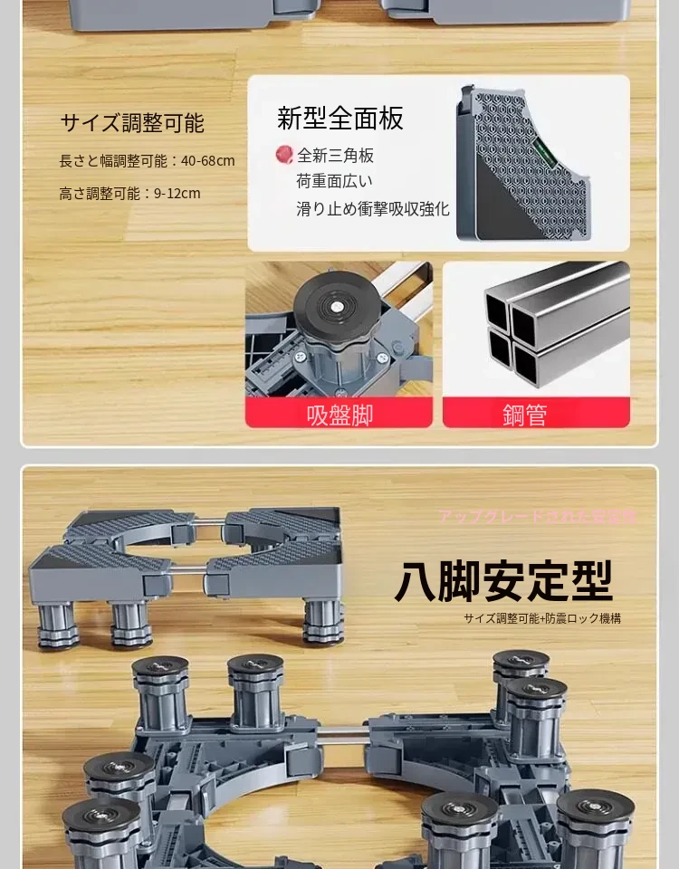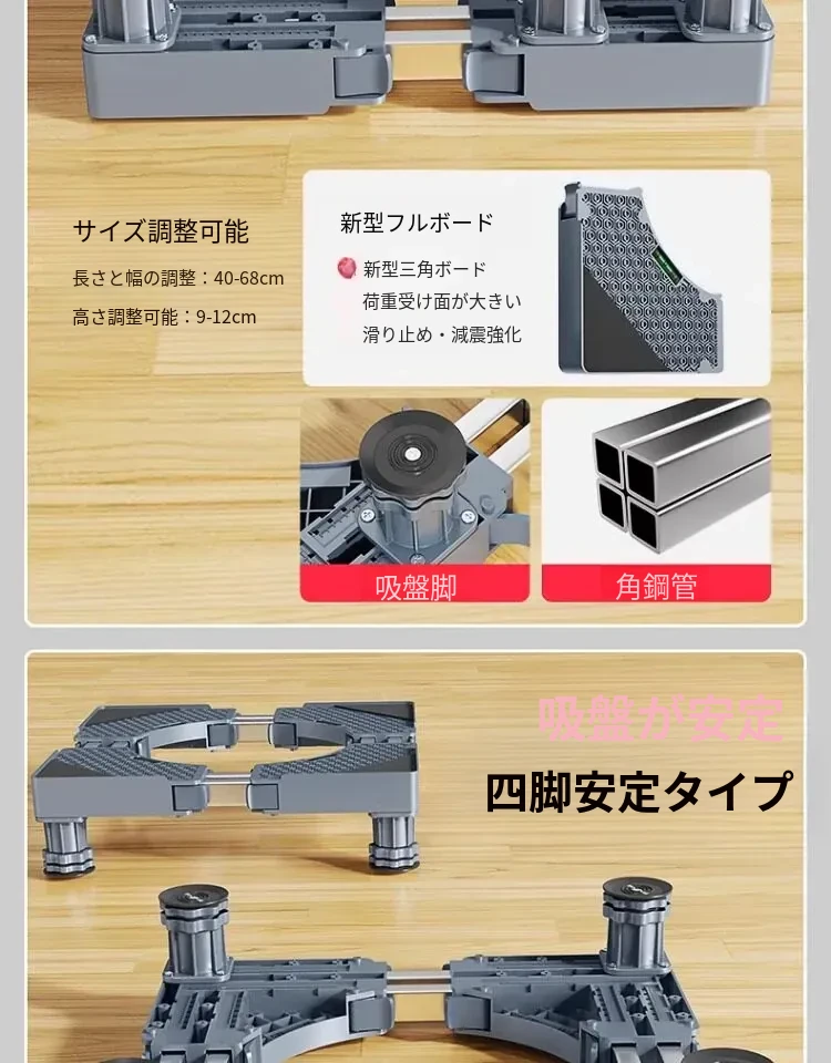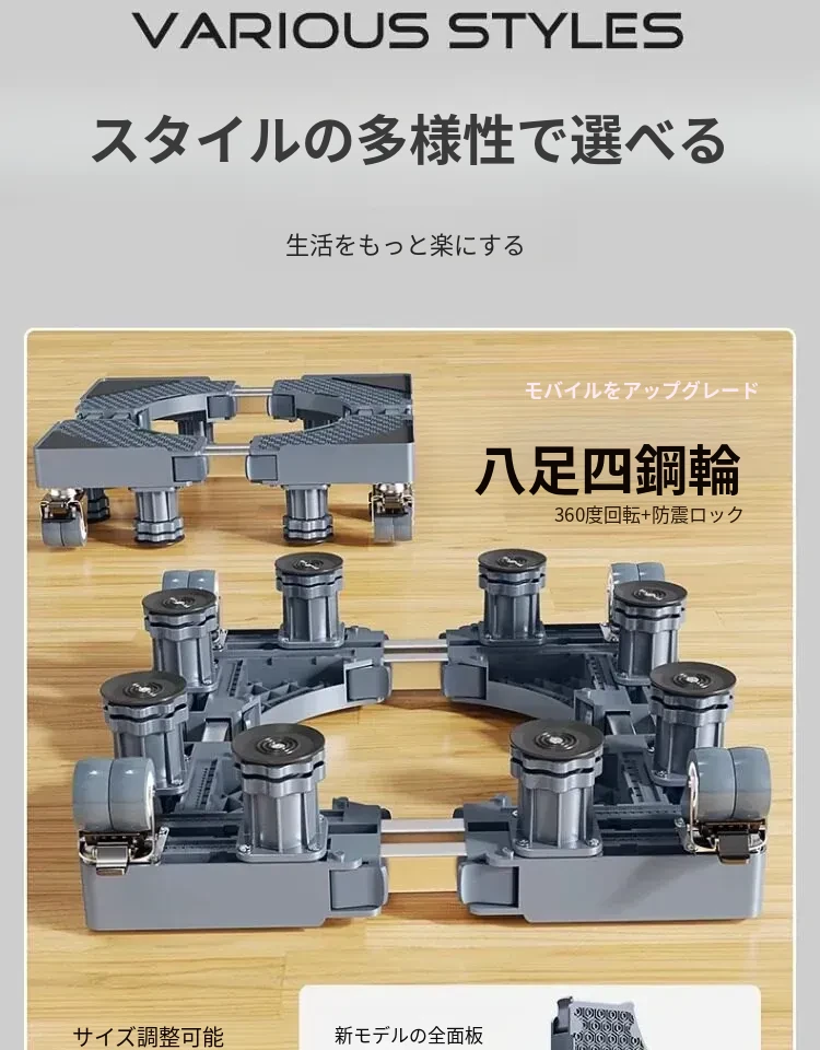 パナソニック洗濯機用キャスター付き底上げスタンド - 防水・防震設計の高強度スチール製フレームで、移動も簡単!あなたの洗濯機をしっかりサポートし、生活を快適にします。