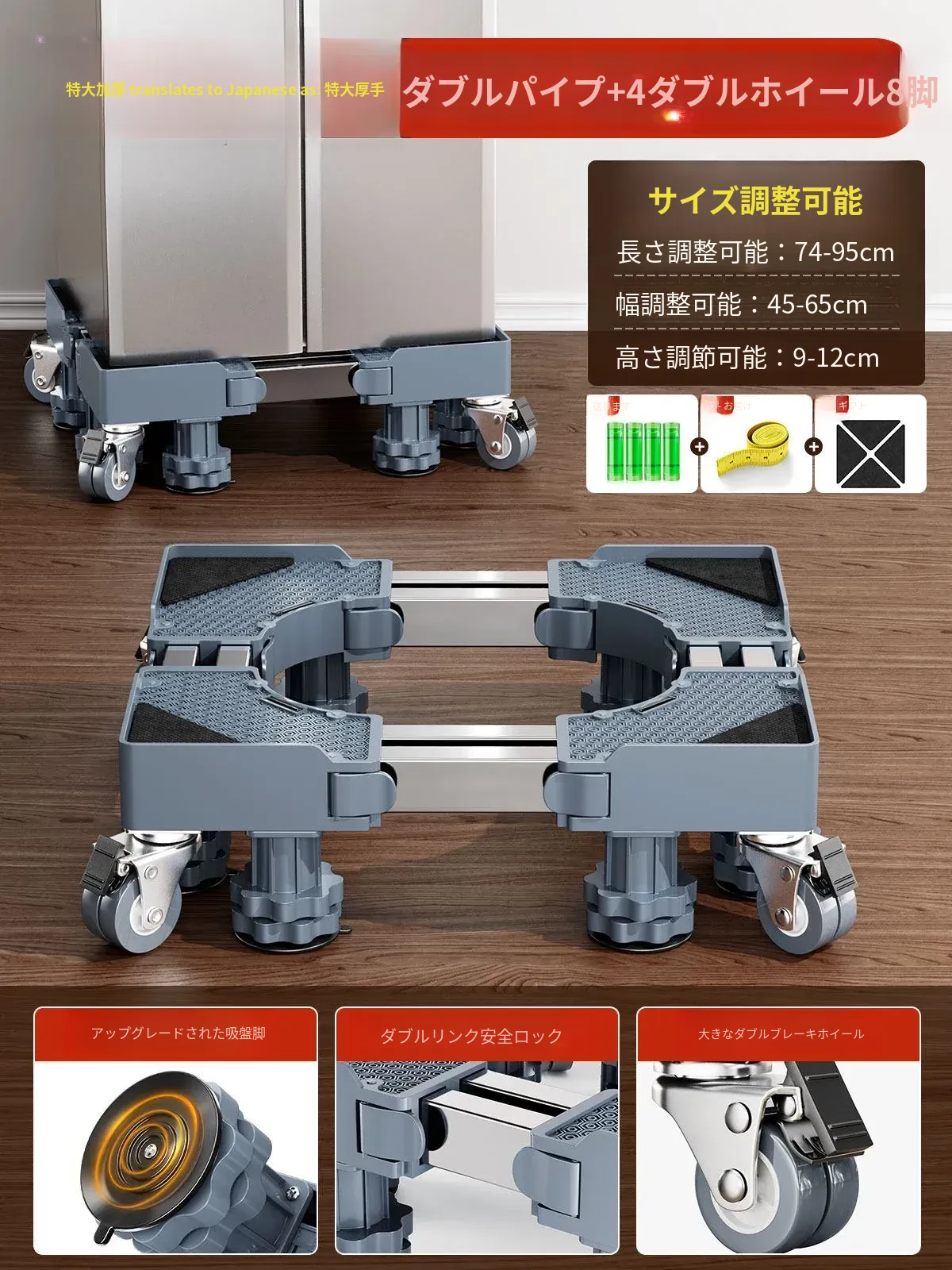 【移動安定款】4双輪ダブルブレーキ+4脚柱+ダブル防震ロック