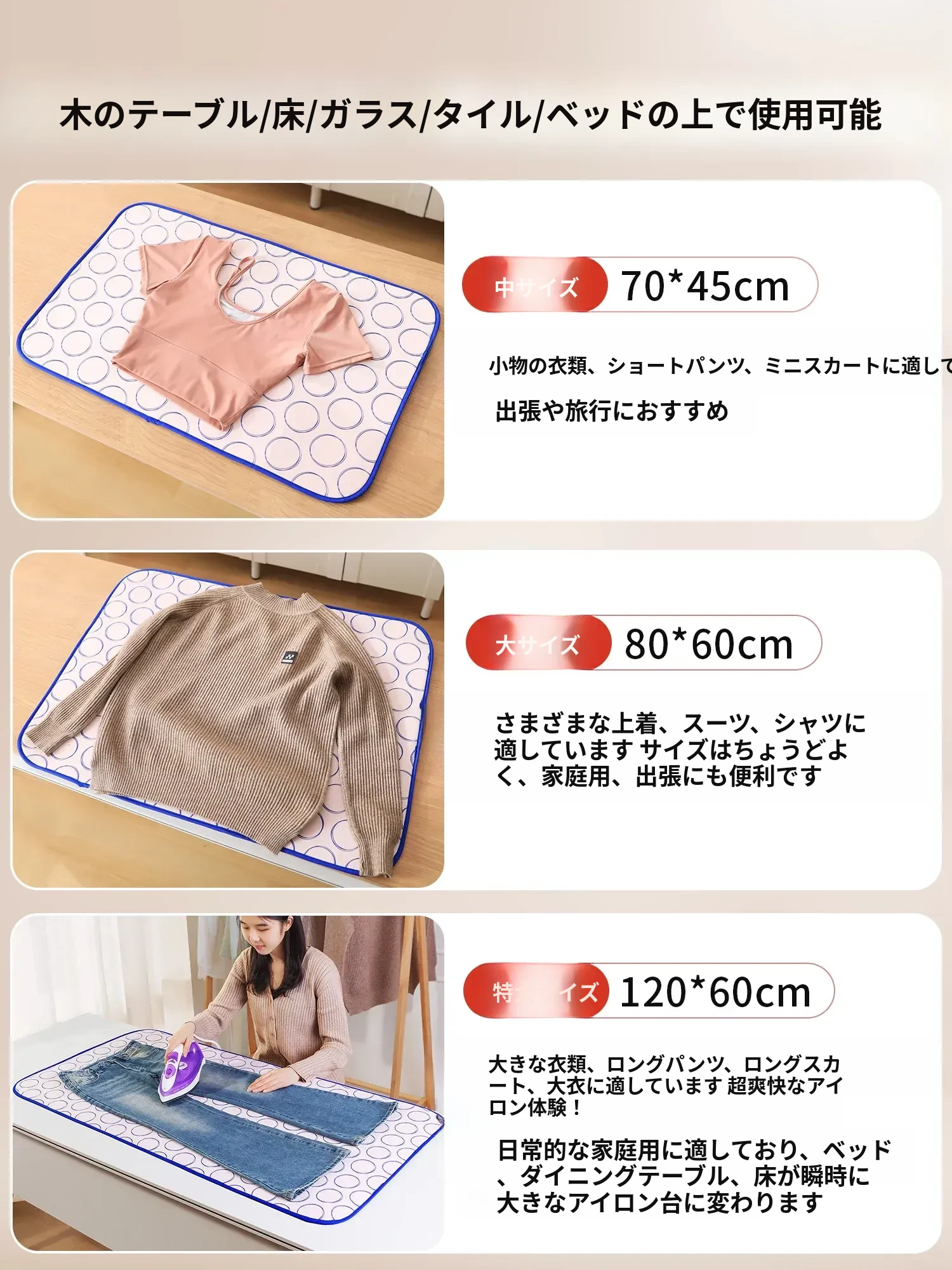 【3点セット】特大アイロンマット+ハンドアイロンボード+アイロンパッド