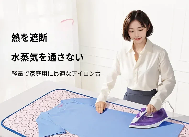 折りたたみ式アイロン台 - 家庭用・小型・ベッド上で使える便利な衣類アイロン!耐熱布&手持ちアイロン用の防熱グローブ付きで、安心してアイロンがけができます。快適で効率的なアイロン作業を実現!