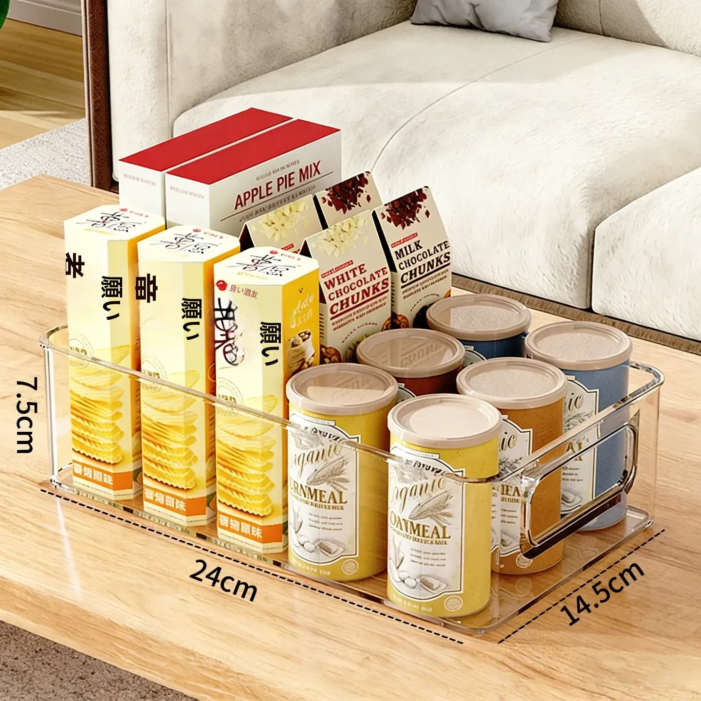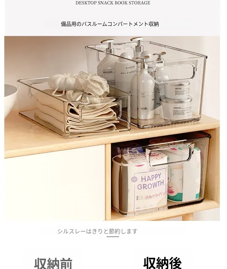 透明収納ボックス - デスク周りの化粧品やフェイスマスクを整理整頓!家庭用キッチンにもぴったりなプラスチック製アクリルお菓子バスケット。すっきりとしたデザインで、あなたの生活空間を美しく!