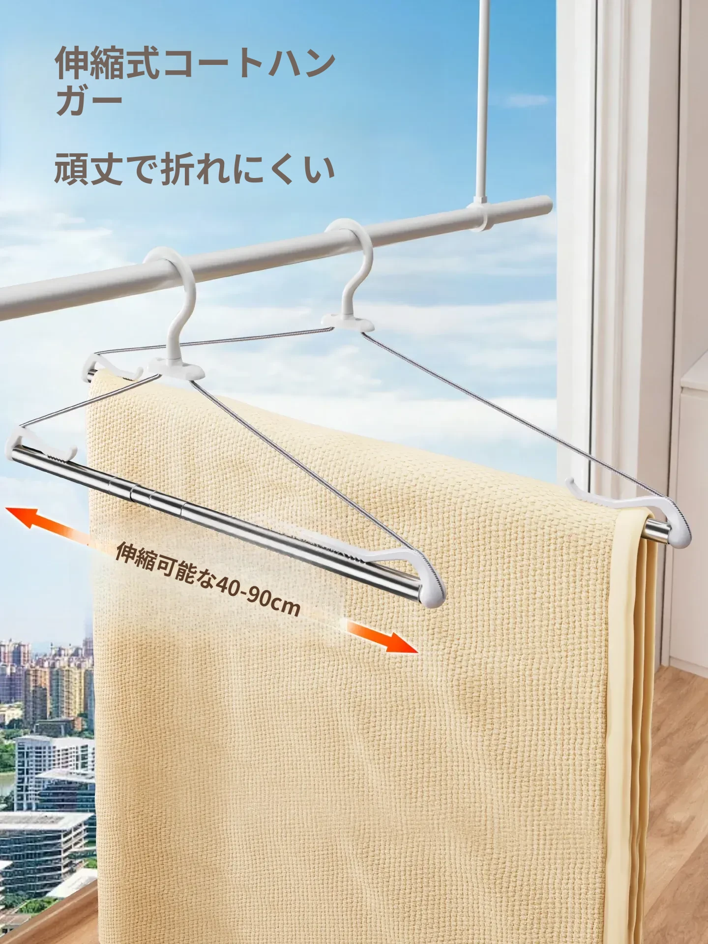 伸縮式ステンレス物干しラック - 家庭用・風に強い・布団やシーツ専用の多機能大型バスタオルハンガー!おしゃれで便利な洗濯アイテムで、あなたの生活をもっと快適に!
