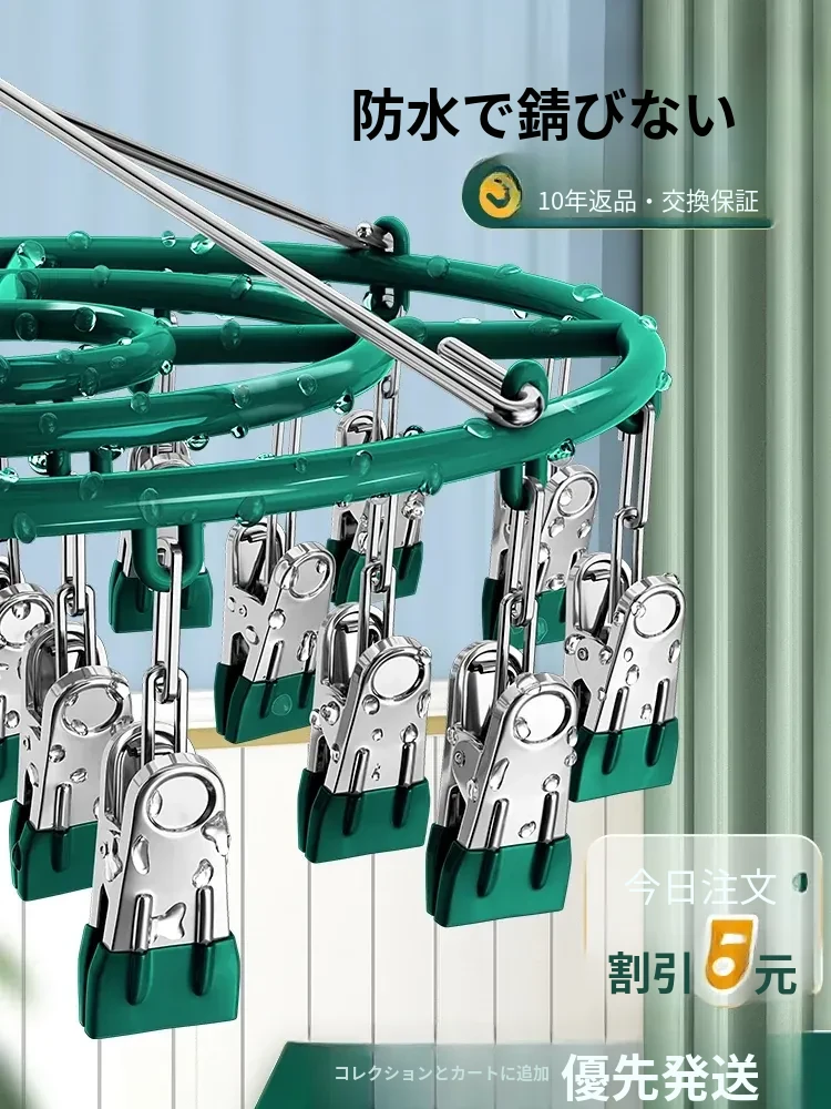 多機能ステンレス製靴下干しハンガー - 無痕クリップで下着や衣服も安心!おしゃれで実用的な干し神器、あなたの洗濯をもっと楽に!