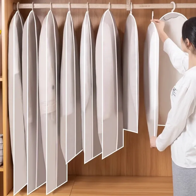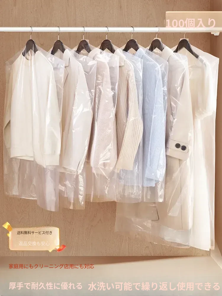 透明プラスチック製の衣類防塵カバー - 家庭用ハンギングタイプ、コートやドレスに最適!クリーニング後の衣類をしっかり保護し、いつでも清潔感をキープ。使い捨てタイプで便利、衣類を埃から守ります!