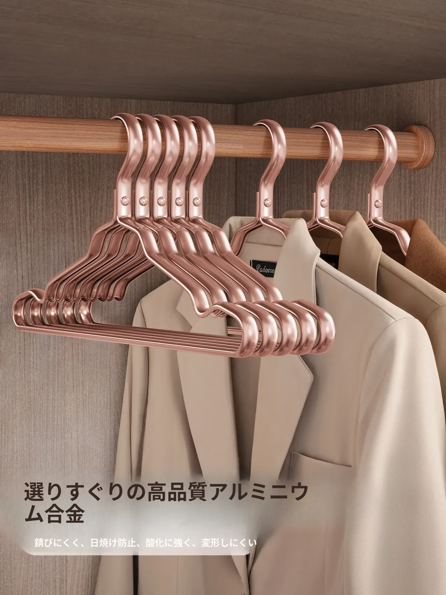 高級スペースアルミ合金ハンガー - 滑り止め&痕跡なしの多機能衣類収納!頑丈なデザインで、あなたの衣服を優しく支えます。家庭にぴったりのスタイリッシュなアイテムで、整理整頓も簡単!