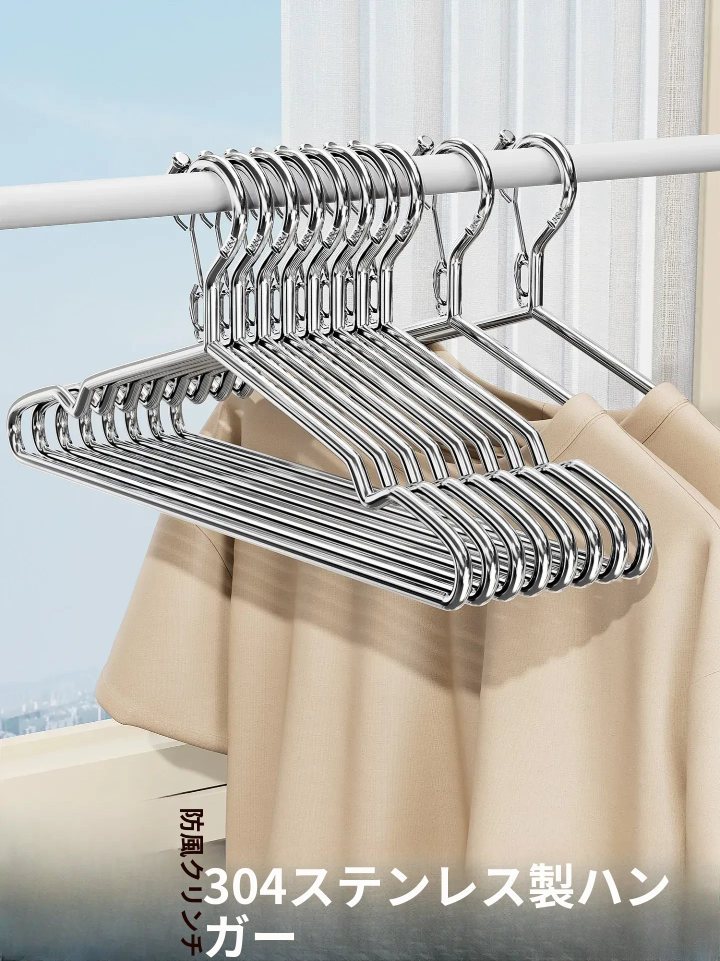 304ステンレス製の衣類ハンガー、家庭用寝室向け、跡が残らないデザイン、滑り止め機能付き、太くて頑丈な衣類支え。おしゃれで実用的、あなたの衣類を優しく守ります!