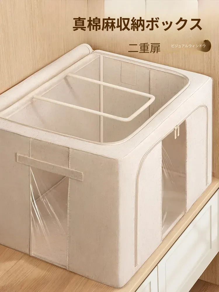 極厚コットンリネン衣類収納ボックス、折りたたみ整理用に最適!クローゼットをスッキリ整理する家庭用シーズンチェンジ必需品!